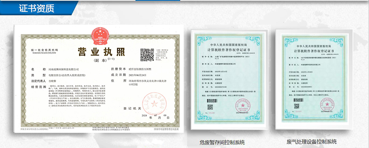 工業廢氣處理設備|瑞博環保廠家技術資質圖